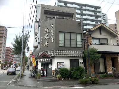 中央区新町一丁目にある「名代肥後そば 政木屋」。今年で創業145年!明治6年から営業している老舗蕎麦屋。来年、年号が変わったら、5つの年号を渡ったお店となるほど歴史あるお店です。