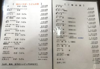 今回は馬肉蕎麦を選びましたが、蕎麦のメインである「ざるそば」や「天ぷらそば」なども間違いなく美味しいはずです。