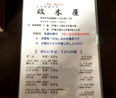 創業から145年続く超老舗そば店!「名代肥後そば 政木屋」の馬肉蕎麦!