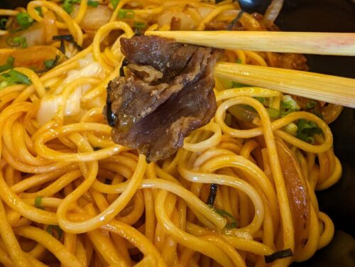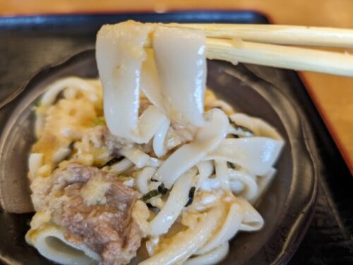 これ、「肉うどん」に入ってるお肉なんです!この甘辛く煮込まれた牛肉が和風感を増しているようです。