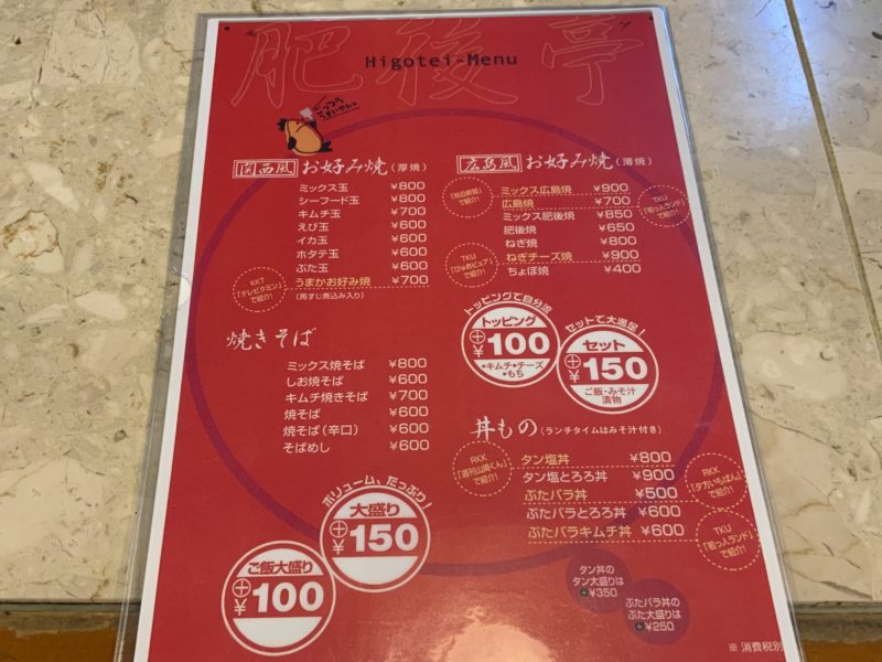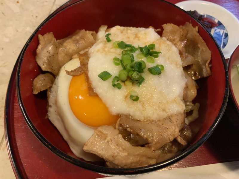 もともと「肥後亭」はお好み焼きと焼きそばのお店だったそうですが、お客さんのリクエストで目玉焼きをご飯に乗せて出してあげたら、次は「肉もほしい」となってお好み焼き用の豚肉を焼いて乗せて出したことから生まれたメニュー。いつの間にやら人気メニューに。