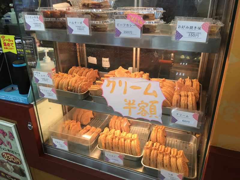 そんな中で目につくのが、クリームたい焼きが半額の表示!これはもう買うしかない!