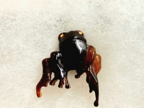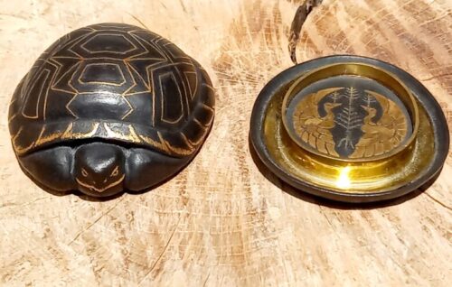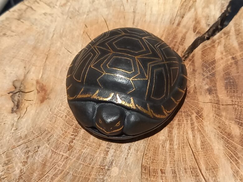 手のひらサイズの作品の中に鶴亀が揃ってめでたい