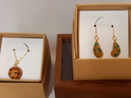 桃は昔から邪気払いや魔除けに使われていた由緒あるものですが、それがこんなにキレイなアクセサリーになるとは。