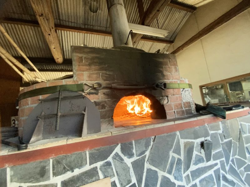 ピザはこちらの石窯で焼いています。内部は約550℃。近づくと薪の燃えるいい香りがしました。