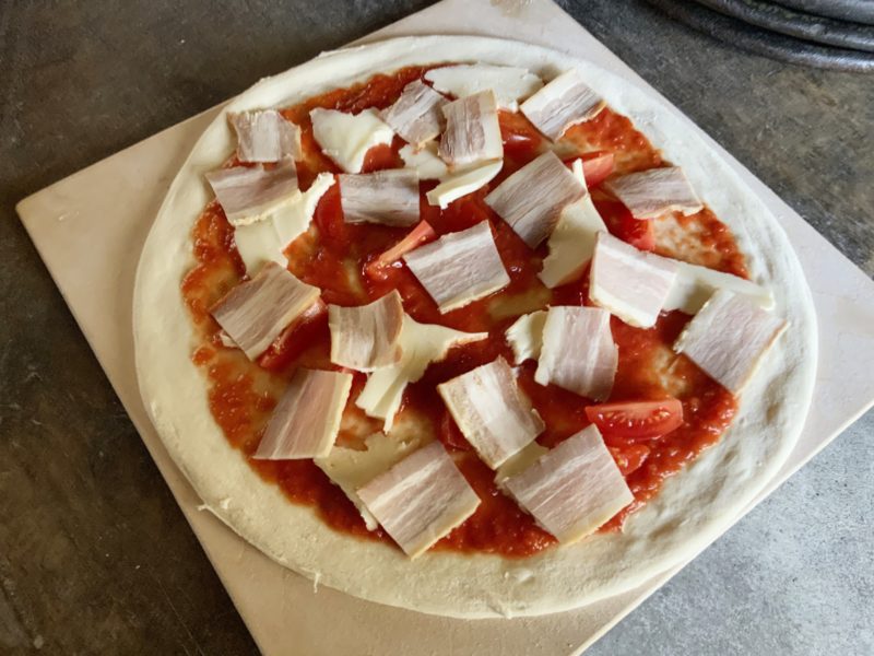 ここに、この自家製ヒグラシベーコンがたっぷり乗ったピザを投入します。