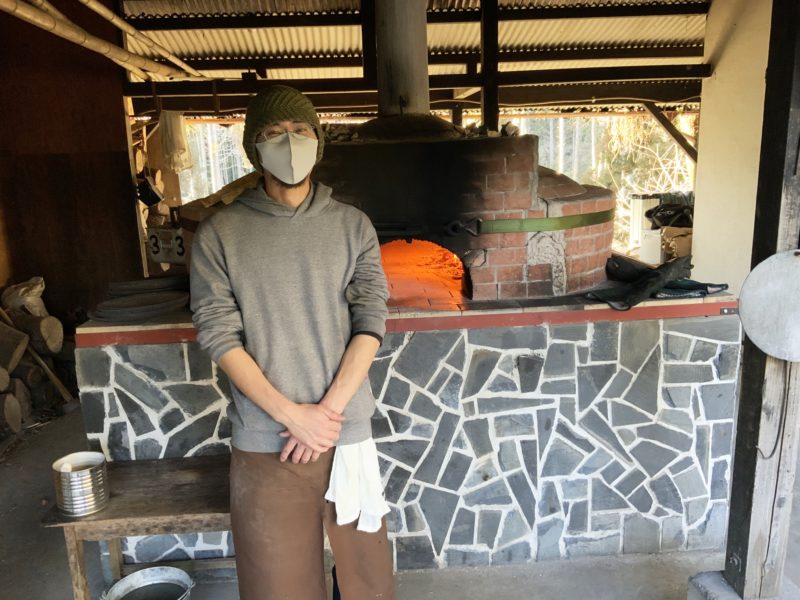 カフェ「ヒグラシ」の渡邉さん。お父さんが陶器を焼かれ、渡邉さんはピザを焼いている焼き物親子。