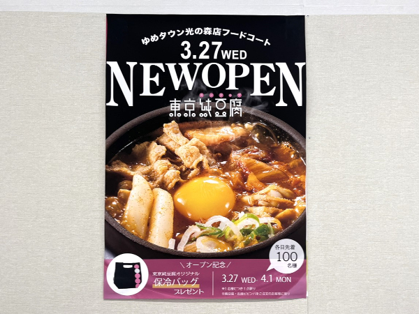 「東京純豆腐」・「辰杏珠(シンアンジュ)の2店舗は3月27日(水)オープンです!