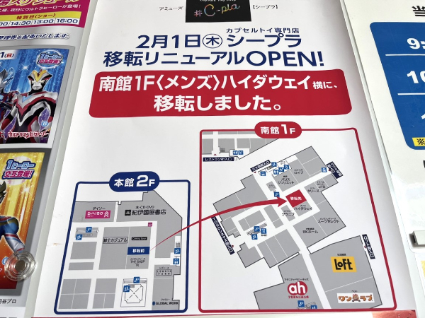 「カプセルトイ専門店シープラ」移転と聞いて、何名かはこんな疑問を持ったのではないでしょうか?移転前の本館2階スペースはどうなったの?