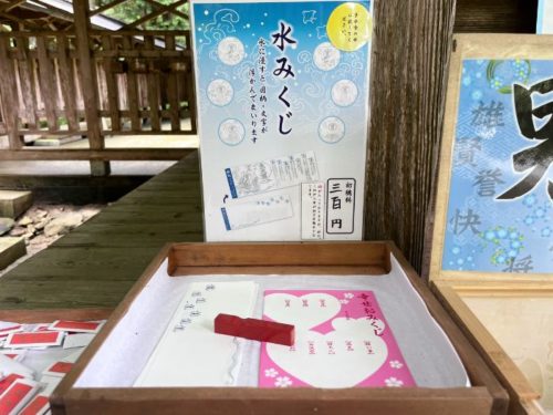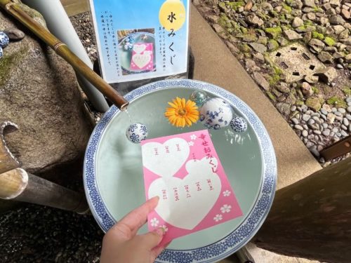 こちらの水におみくじを浮かべると文字が現れます。神様からの助言を頂き、次へ進みましょう。