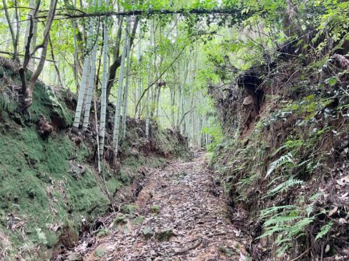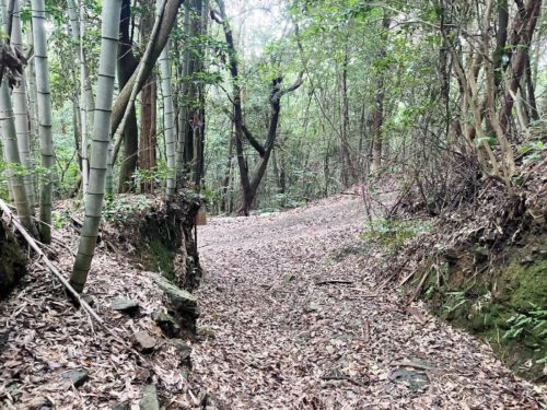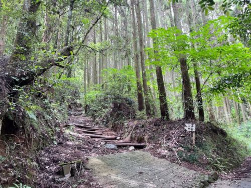 前方を見ると、視界には山道が広がっています。先が見えません。それでも徒歩で5~10分とのことなので、運動だと思って登っていきます。