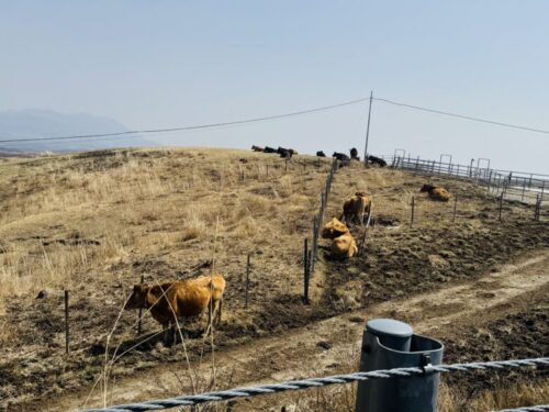 これから向かう廃墟にどきどきしながら、牛の横を通りすぎます。