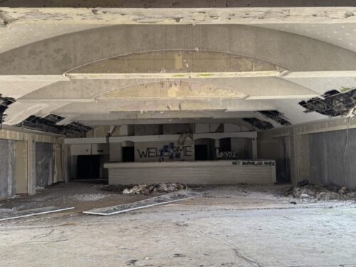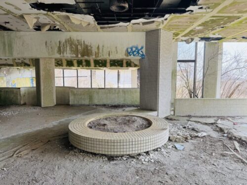 そんな中、人々の夢を抱えたまま、1982年(昭和57年)開発事業者のドッパーが倒産。内装の途中にて、産山村に建つはずだった「卑弥呼の里」はそのまま廃墟となってしまいました。