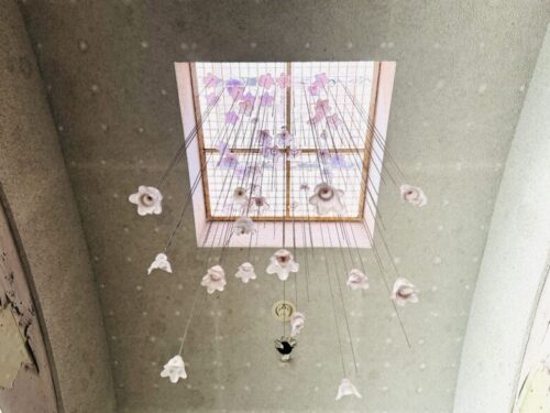 今にもライトが付きそうな桜のシャンデリアがとても美しい
