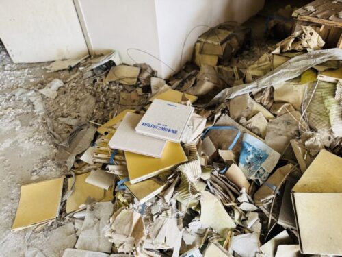 解放された場所には沢山の資料。アダルトな漫画などの廃棄は一切なく、卑弥呼の里の資料ばかり。まるで工事の途中で時が止まっているよう。