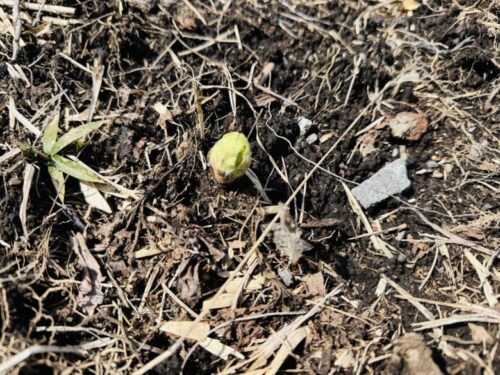 ふと足元を見ると野焼きのあとから、春のふきのとうがひょっこり。季節はまた繰り返し、「卑弥呼の里」の周りの風景だけが変わってゆきます。