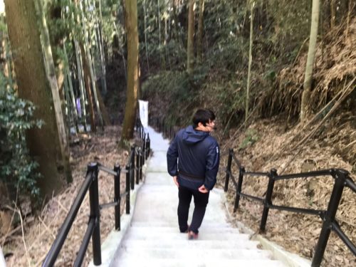 奥の竹やぶの方に、200段弱の階段があり、そこをガイドさんについて下りていきます。階段が不安な方は、車も出してもらえるので安心です。