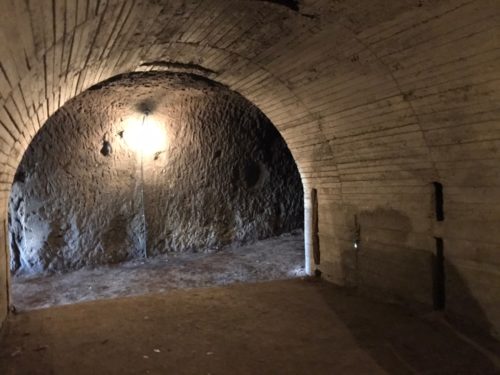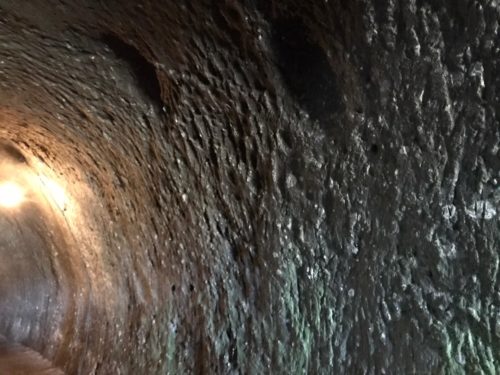 中の壁には縦の筋が入っていますが、これは当時、爆薬で穴をあけ、つるはしを使って、手彫りで掘られていた跡とのこと。実際に自分の目で見ることで、戦争が行われていた当時のことを、肌で感じることができます。