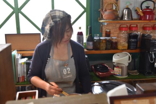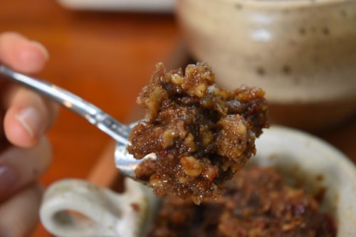 カレーは辛くなくちゃ! という方には、阿蘇の唐辛子と南阿蘇の無農薬米酒粕を使った自家製辛味噌と一緒に食べましょう。ちなみに店主は辛味噌苦手らしい。そして、スコップ型のスプーンは可愛いから選んだそうです。