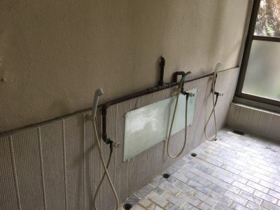シャワーもくみ上げたお湯がそのまま使われている、温泉の出るシャワーです。ひねれば温泉水が出てきて、それで身体を洗うわけですが、昔ながらのシンプルなシャワーなので、温度調整はできません。ですからシャワーも熱いです…。
