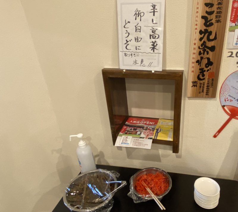 辛し高菜と紅ショウガは無料でトッピングができるようで、うれしいサービス。