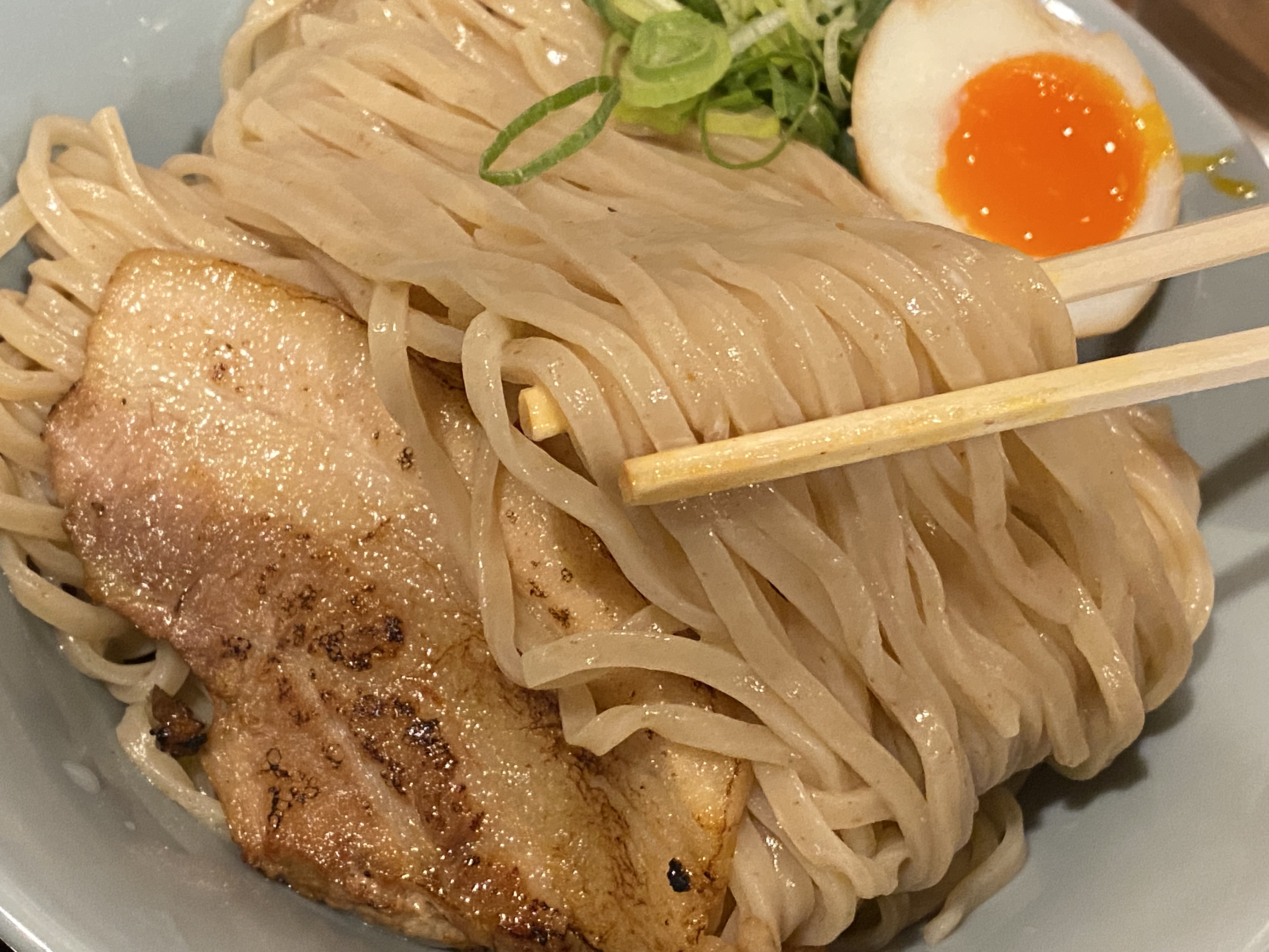 モチモチで、表面のツルツルさが筆舌に尽くしがたい素晴らしい麺です。