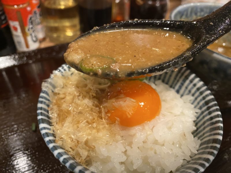 麺を食べたら、ぶっかけ飯につけ汁を入れていただきます。
