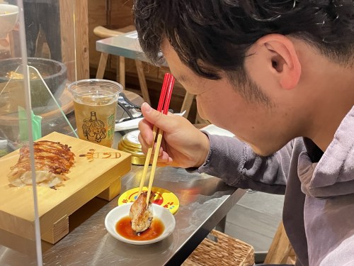 皮の部分は、上は柔らか下はカリッとで2度美味しい食感。噛むと熱々のお肉から肉ジルが