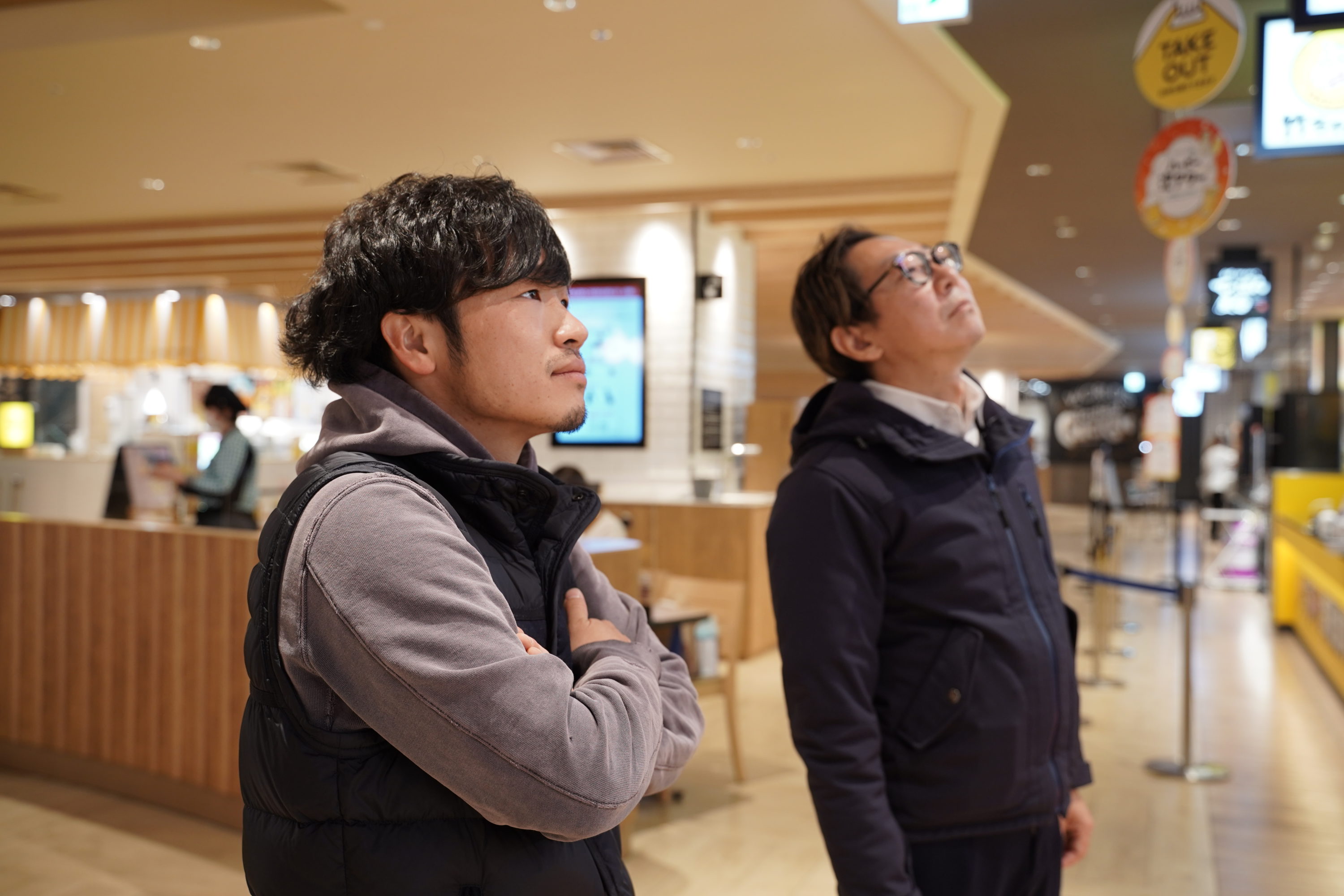二人、真面目な顔で店の前で立ち尽くしてますが…