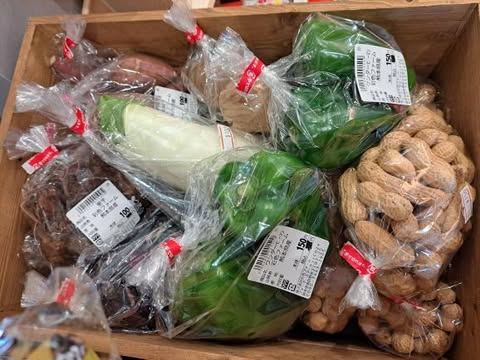 里芋100円、白ナス100円、ピーマン150円