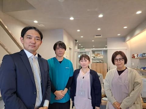 (写真向かって一番左が中村さん。事務員、薬剤師、栄養士とそれぞれ専門スタッフがいます。)