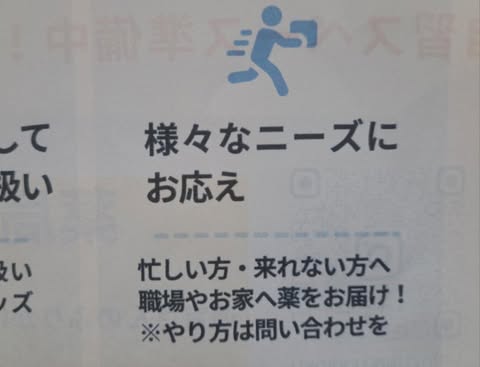 有料(100円)で職場や家に薬を配送・配達もしてくれます。