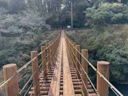 風に揺れるわけでもなく、静かにある橋をゆっくりと渡り、景色をたくさんに楽しめました。春は桜、秋は紅葉が美しいようです。