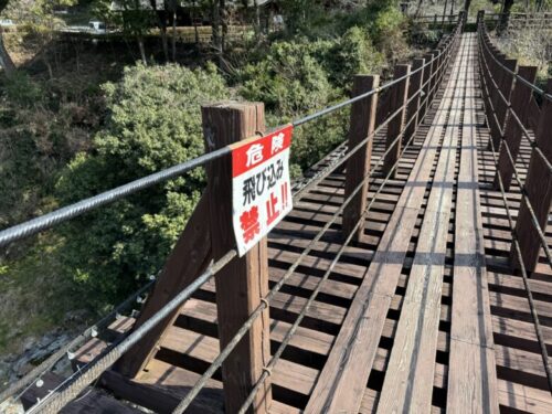 橋は綺麗に整備されておりますが、天候の悪い日は避けて、運動靴でお出掛けされる事をお薦めいたします。