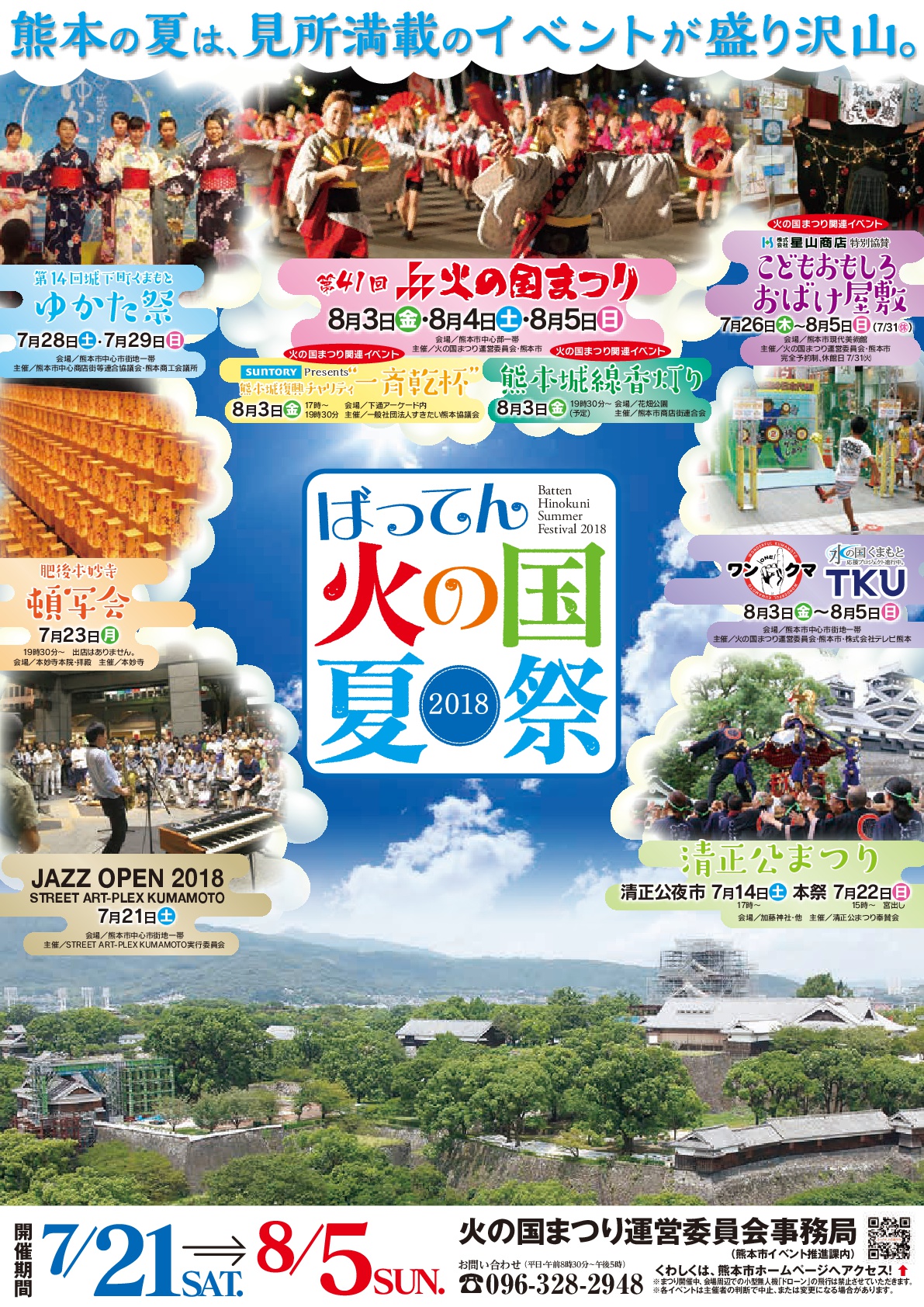 火の国まつりも含めて、7月21日~8月5日まで熊本の中心部ではお祭りやイベントが目白押し!