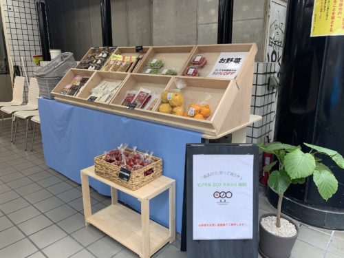 入り口には新鮮な産直野菜が並んでいます。フードロスを減らすべく、ふぞろいの野菜をお手頃価格で販売しているのだそう。