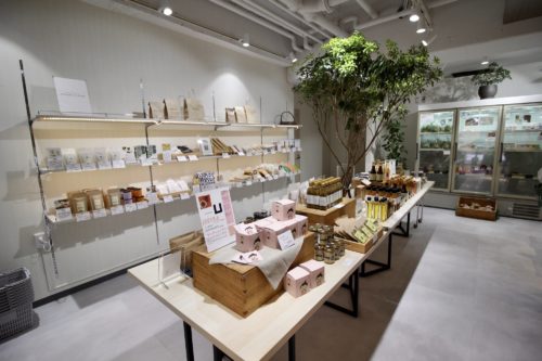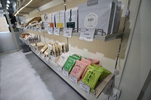店内向かって左側は「ヒノマルマルシェ」の物販スペース