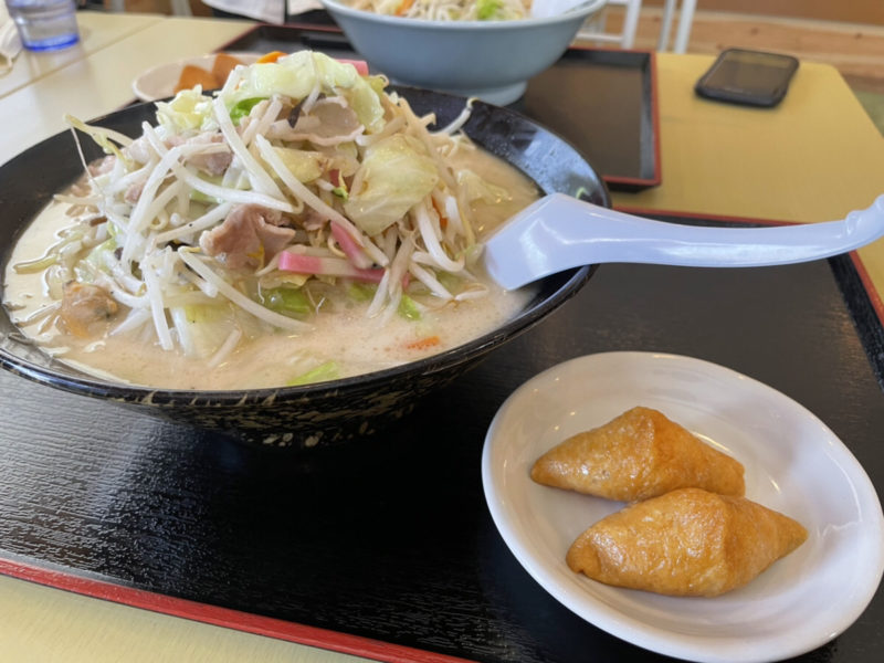 メニューはこちら。長崎ちゃんぽん(いなり付き)と長崎ちゃんぽんセット(餃子+いなり付き)