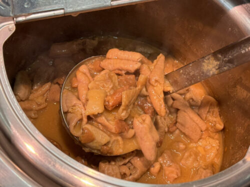 ひさちー(仮)いわく、カレーもホルモン煮込みも互いに主張は強いけども、2つを合わせると何故か互いのいいところを高めあう関係なのだそう。