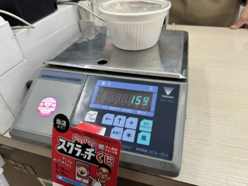 次はご飯。これは100グラム76円なので、できれば100グラムを狙いたいところ…!