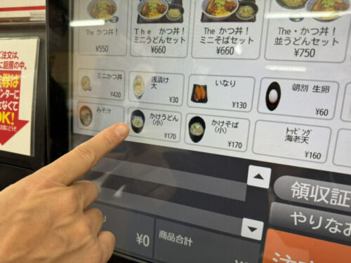 画面下に出てくる「かけうどん(小)170円」を選択。