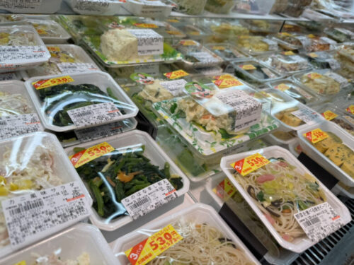 惣菜ゾーンでは豊富な種類がゆえに迷いが生じるうえに、3パック買った方が安いというトリックにひっかかりそうになりつつも