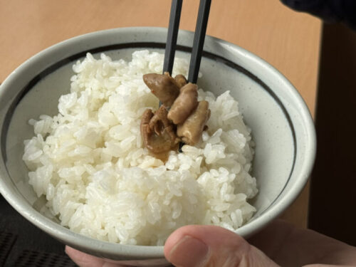 豚ホルモン煮込みを白米にワンバンさせるもよし、ご飯にぶっかけてホルモン丼にするもよし。