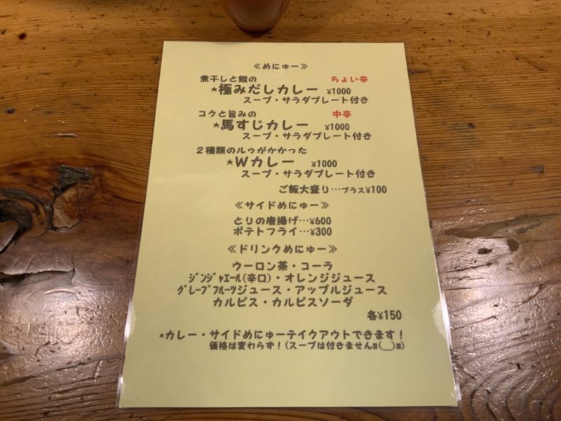 基本は居酒屋さんですが、9月からランチでカレーの提供を始めたそうなのですが、馬スジカレーに出汁カレーと居酒屋が本気を出したカレーで美味しいという噂を聞きつけてやってきました。