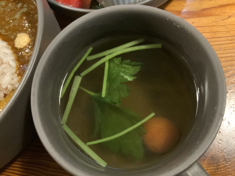 スープは日替わりだそうですが、この日は梅干しまで入っていました。