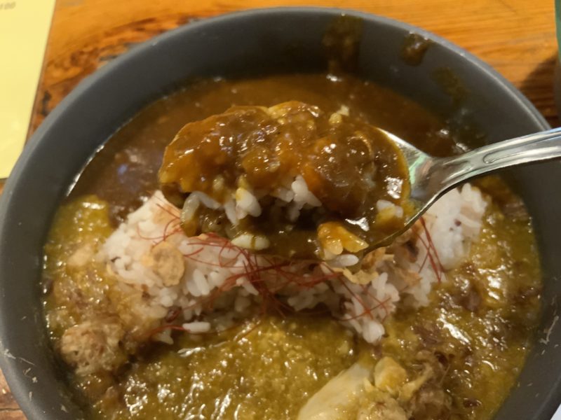 ちょっぴり辛口なカレーなんですけど、ダシの味がじゅわあああっと口に広がって、大満足の美味しさ。