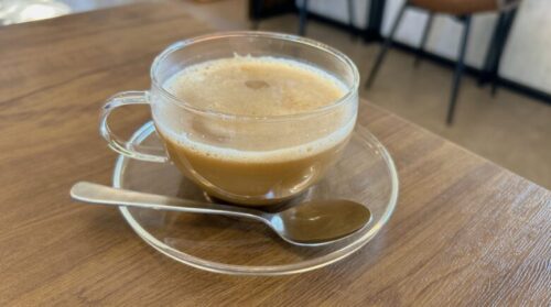 温泉水入りのカフェラテ