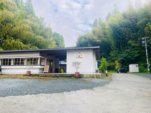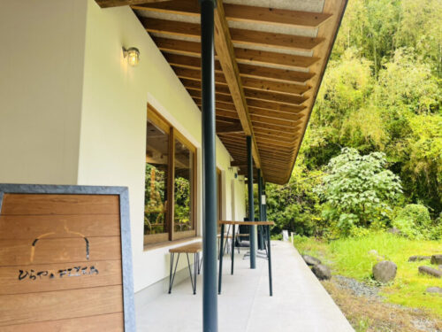 山鹿市の平山温泉街の中にある「ひらやまpizza」はこちら。シンプルでオシャレな白い外観です。