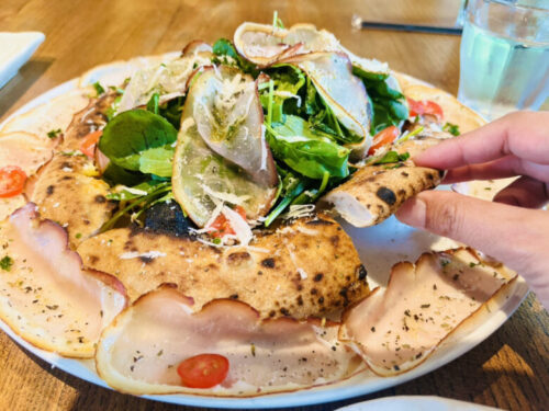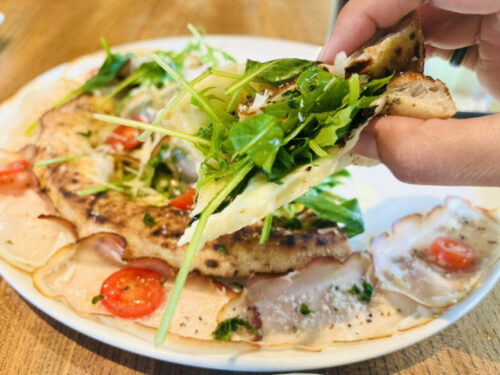 生ハムやベビーリーフはもちろんそれだけで食べても美味。サラダのような感覚も同時に楽しめましたよ。