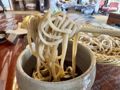 毎日朝から手打ちされているお蕎麦は十割蕎麦。どっしりとした重さと歯ごたえで、まだ食べ始めたばかりなのに、「絶対また来よう!」と話す程です。